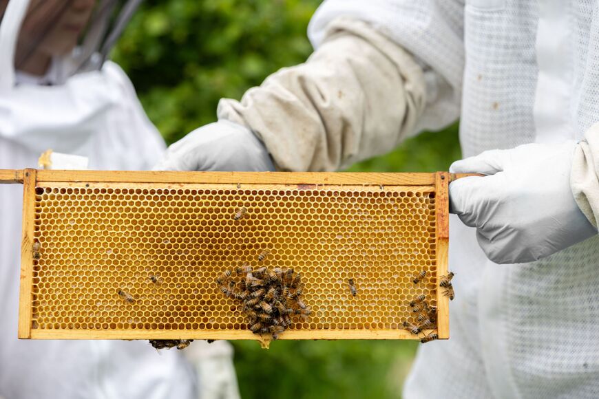 We have two volunteer bee keepers who look after the hives and the apiary all year round, and we also have a wider team of excellent and enthusiastic volunteers who plant and maintain bee friendly plants. Happy, healthy bees make the best honey!